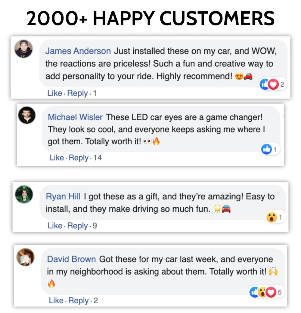 Turn heads when drivingMake your car look fun and unique with glowing, animated eyes. People will notice your car everywhere you go, day or night!